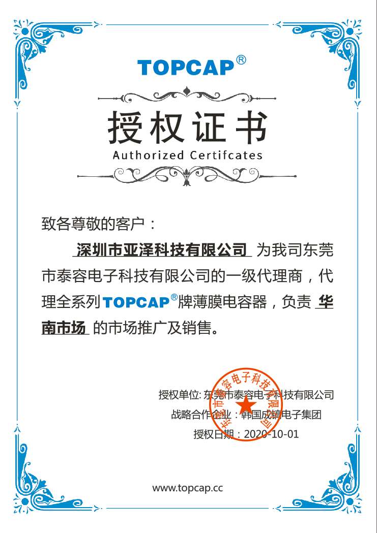 日本黑金剛(NIPPON CHEMI-CON)電容、韓國三瑩(SAMYOUNG)電容、東陽光(HEC)電容、凱美(KAMCAP)超級電容、成鎬薄膜電容、泰容薄膜電容、貝特保險管、大毅電阻、天二特殊電阻、CROWN散熱風扇等多家國內(nèi)外知名品牌一級代理及華南區(qū)域總代理授權(quán)。